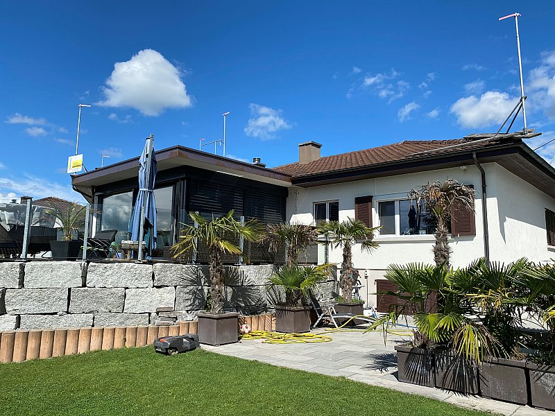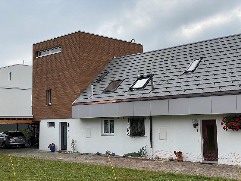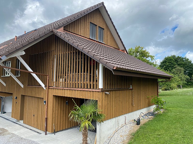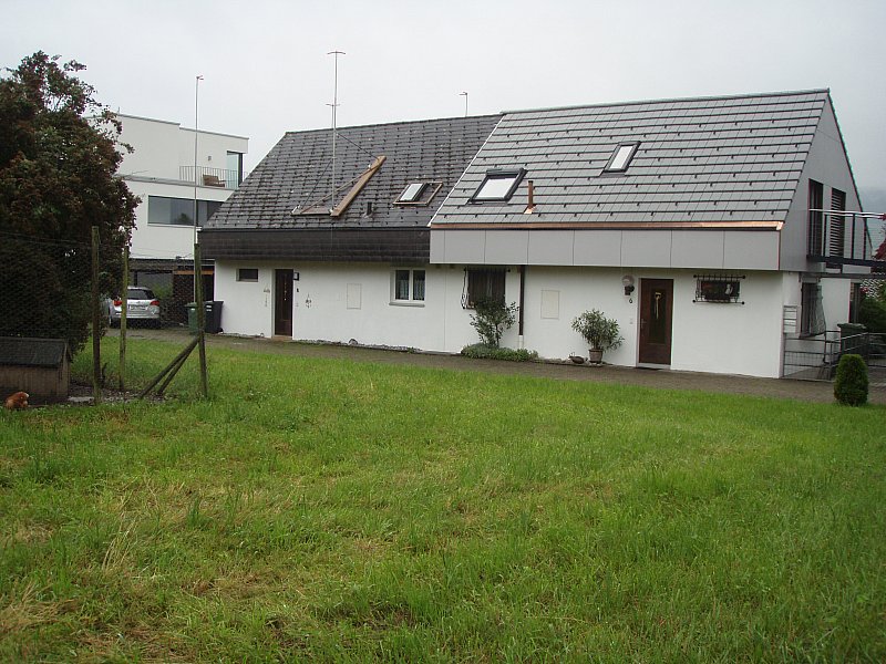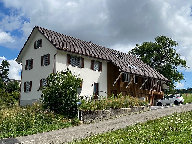 Bei dieser Liegenschaft wurde eine Doppelgarage für die Fahrzeuge realisiert. Im gleichen Zug wurde die Eingangspartie neugestaltet und der Dachstock mit Lukarnen und einem neuen Balkon ausgerüstet. Ohne den Grundcharakter der Liegenschaft zu verändern, wurde so ein modernes und vergrössertes Raumangebot geschaffen.